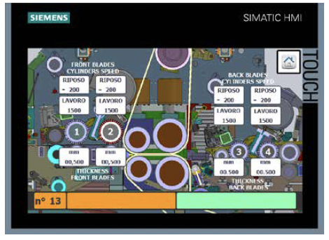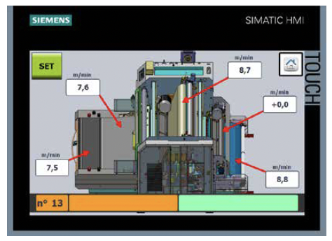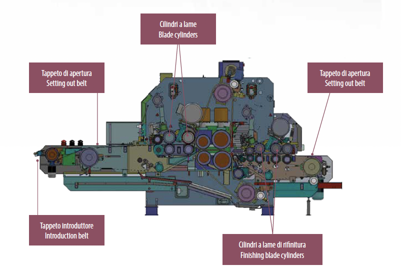 Esta función permite configurar las velocidades de trabajo de los tapetes y del fieltro, aumentando la apertura de la piel gracias a la diferencia de velocidad entre entrada y salida