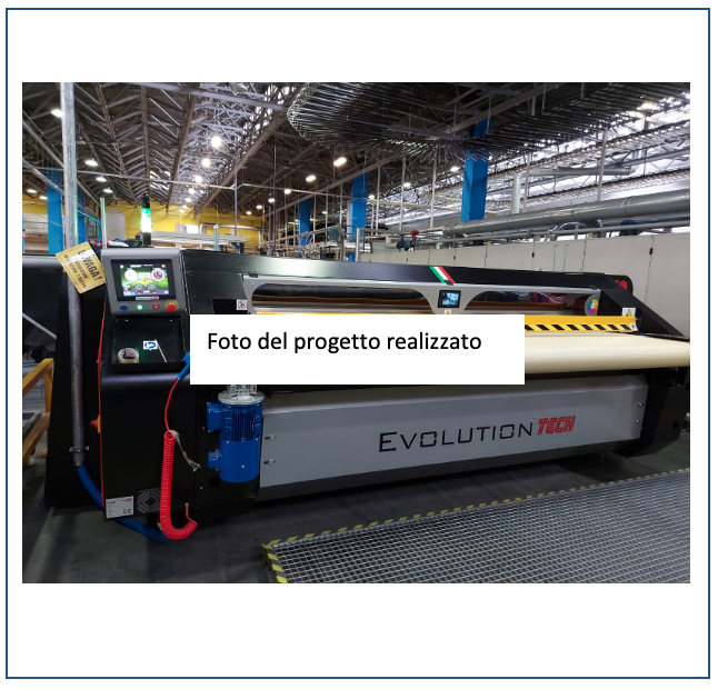 Obiettivo del progetto è lo sviluppo di un innovativo sistema di verniciatura a freddo ad elevate prestazioni, che consenta un’ottimale riuscita delle operazioni di stiratura, stampatura, palissonatura, goffratura e finissaggio non solo di vari tipi di pelle (pelle, pelle conciata, finta pelle), ma anche di tessuti ed altri materiali sintetici. L’approccio tecnologico ideato prevede la ricerca di materiali ed architetture impiantistiche innovative per massimizzare il risparmio energetico ed utilizzare in modo più razionale le risorse.